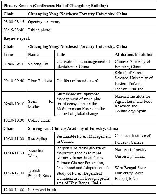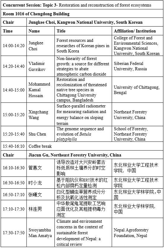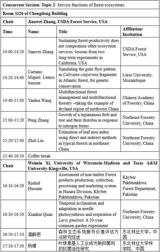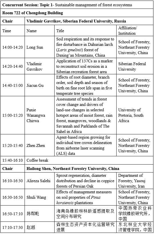 Co-Chairs:Fengri Li, Timo Pukkala, Weimin Xi, Sven Mutke Regneri, Guifeng Liu, Guangze Jin and Jianping Pan