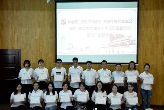 校准思想之标,铸就党性之魂。2019年6月27日,林学院于主西104举行“习近平新时代中国特色社会主义思想”第二期学生骨干学习班结业仪式暨七一表彰大会。