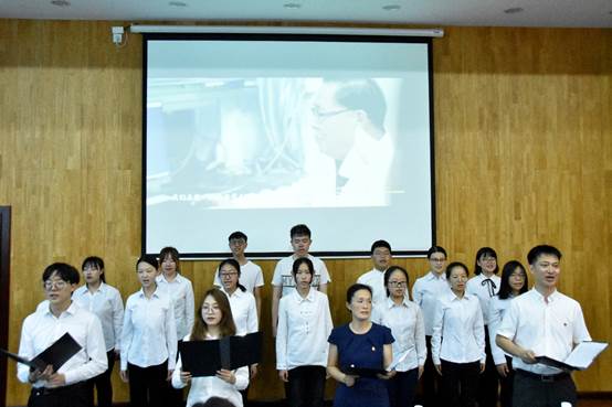 “起来,饥寒交迫的奴隶!起来,全世界受苦的人!满腔的热血已经沸腾,要为真理而斗争!”雄浑激昂的歌声在主西104中响起,提醒着在场的师生要时刻牢记曾经的艰苦岁月,要为了这来之不易的幸福继续奋斗,不忘初心,砥砺前行。