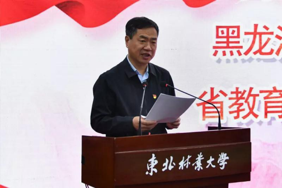 黑龙江省委教育工委副书记、省教育厅党组副书记申林、东北林业大学校长李斌、中国科学技术大学空间物理教工党支部书记苏振鹏、东北林业大学森林资源管理系师生党支部书记李继红共同启动“高校专家助力龙江发展联盟”,点亮合作之光。联盟之间互相学习,交流,合作,分享发展成果,发挥各高校研究型、应用型人才集中优势,共同把握机遇,迎接挑战,促进教育融合发展。启动仪式后,申林书记发表讲话。