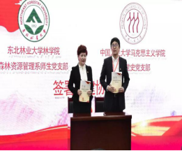东北林业大学森林资源管理系师生党支部李继红书记与到会的高校“双带头人”教师党支部书记的代表:中国人民大学马克思主义学院中共党史党支部副书记董佳、中国科学技术大学空间物理教工党支部书记苏振鹏、兰州大学草地保护研究所教工党支部书记郭正刚及东华大学纺织学院高技术纺织品系党支部书记孙宝忠签署共建协议,以支部共建为平台,推动彼此党建和思政工作质量提升,促进党建和业务双融合,携手共进,铸造辉煌。