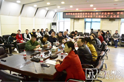 当各位党员及教职工听到前辈们当年是用血汗奉献绿色事业时,无一不感慨万千,但沈海龙教授认为这样孜孜不倦追求“绿色”初心的一生,必然是无悔的。沈教授也期望在座的每一位能够学习他们热爱林业的献身精神和艰苦奋斗的创业精神;学习他们热爱科学,执着追求的钻研精神和严谨治学、一丝不苟的科学态度。