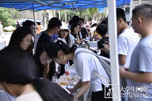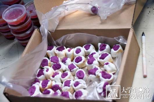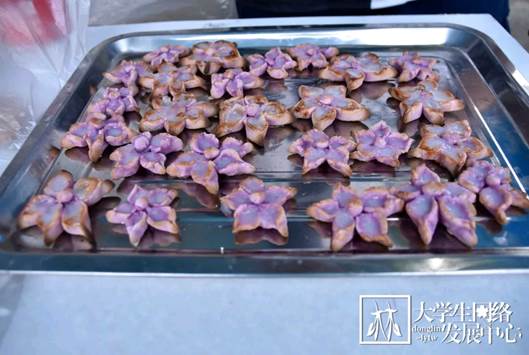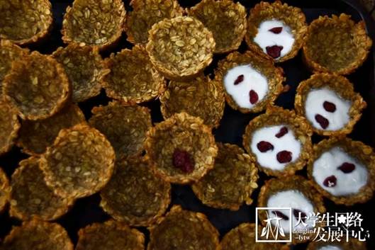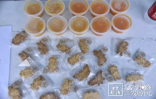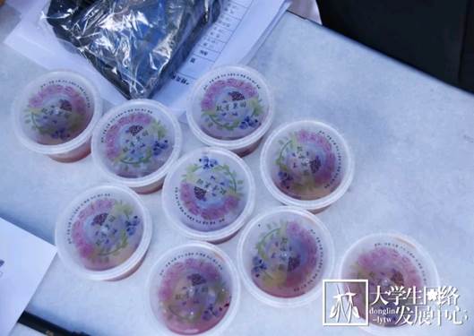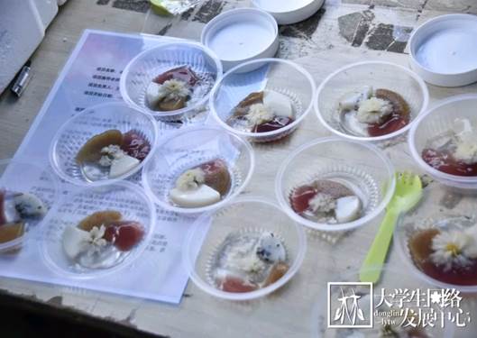 2019年6月12日中午,一场关于美食的盛宴开始了。林学院第四届“精英杯”森林食品创意及精英团队大赛初赛于俭德园门外拉开序幕。历经了一个多月的创新研发与实验准备,这些隐藏于实验室的美品终于展现在同学们的眼前了。这些出自林学院食品科学与工程专业本科生之手的创意食品摆满了长长的桌案,它们色泽光亮,形状独特,看着就令人食欲暴增、垂涎欲滴。快让我们来品尝一下吧。