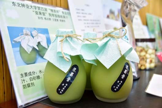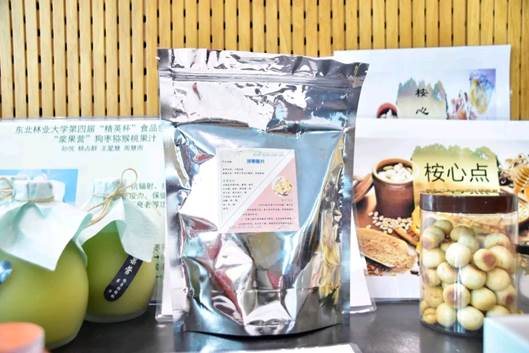 本组同学将大兴安岭的多种森林食品资源融合利用,以核桃、蓝莓、榛子、蜂蜜为原料,提高了资源综合利用度,且产品以鸟巢为原型,造型美观,独创经典。