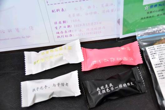 这是一款以西班牙流传的爱情故事为背景制作的牛轧糖,加入松子、榛子等营养坚果,具有苏梅酱、抹茶等多种口味,符合年轻人新潮开放的恋爱观。每个独立精美的小包装上还印着小情话。吃下去,每一口都是甜甜的味道。