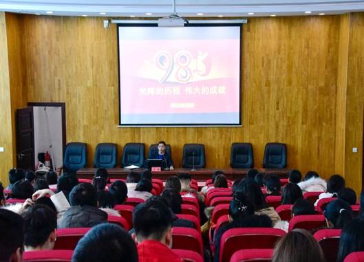 本次讲座由林学院党委副书记兼副院长依磊老师主讲,依书记就中国共产党98年的“光辉的历程,伟大的成就”与在座同学展开探讨。