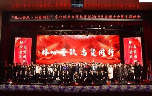 2019年12月20日,东北林业大学林学院“林心壹玖·与贤同行”表彰大会暨主题晚会于科学会堂隆重举行。出席本次表彰大会的颁奖嘉宾有研究生院常务副院长陈广胜、党委学工部部长、学生处处长王春海、教务处处长李明泽、校团委书记李晶才、研究生院副院长曲发义、教务处副处长葛冰、党委学工部副部长、学生处副处长张磊、党委学工部副部长、武装部副部长瞿炳华、校团委副书记乔恩杰、校团委副书记宋天宇和林学院领导班子成员,以及林学院师生在此汇聚一堂,共庆盛会。