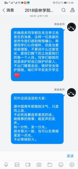 庚子新春,岁寒情暖。面对新冠肺炎疫情的发生,林学院辅导员们迅速响应党中央和学校党委的号召,坚持“抗疫”与“暖心”并举、将“防疫”与“育人”相结合,积极主动作为,面向全院学生开展疫情排查、思政教育、党团建设、学业帮扶、就业指导、心理疏导、生活保障等工作,在这个没有硝烟的战场上诠释了林学院辅导员们的担当。