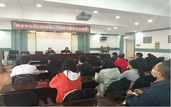 东北林业大学林学院林学系于2021年4月2日在主西515会议室召开2022版本科专业人才培养方案修订学生座谈会。出席本次座谈会的有林学院副院长张鹏、林学系主任卫星、教学秘书孟琳和林学专业、林学类成栋实验班的学生代表,副主任杨成君主持本次会议。