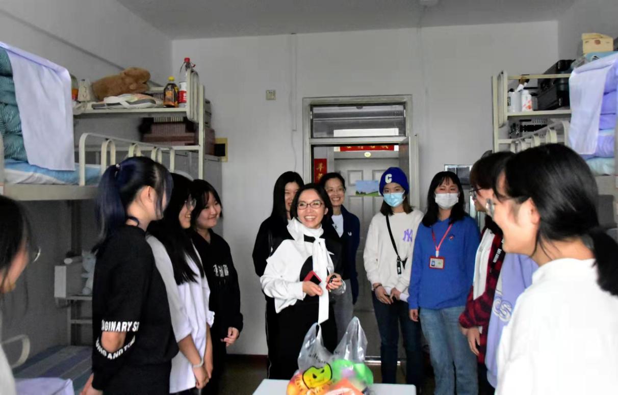 宋妍书记、杨光院长、杨冰雨书记、辅导员谭冰老师走进新生宿舍,为同学们带来了中秋月饼和水果,并仔细询问同学们在新环境下的适应情况,详细了解每一位同学来到学校的感受,细致地解答了同学们提出的问题,并嘱咐同学们及时调整状态,做好新的学习生活规划。