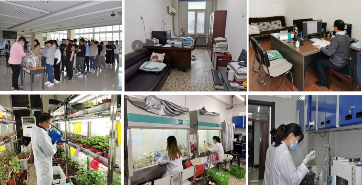本轮疫情春季爆发,正是育种科研工作的重要时期,也是毕业季和开题工作的关键时期。为了保障科研工作的顺利进行,保障研究生能够正常完成学业工作,学校和学院为实验室努力创造了工作条件,实验室更是加强重视和管理,多名党员教师奋战在一线。疫情期间,共有10位教师参与驻校并协助实验室进行管理工作,其中有6位党员教师,师生勠力同心,体现了责任与担当。曲冠证老师,从20年初疫情开始,就一直排除万难坚守一线。本轮疫情中,一直驻扎在学校,认真负责实验室的日常管理工作,每天接送学生,并负责学生的签到管理。他每天坚持各个楼层巡查,以便于发现突发情况,多次及时解决了设备故障,有效避免了科研损失。帮助无法进校的老师和学生完成试验苗木的培养工作,浇水,扩繁,工作量繁重。他还积极参与疫情防控志愿者活动,起到了党员的先锋模范带头作用;姜廷波老师今年已57岁,连续住校超过3周,虽然年龄较大,但仍和年轻老师一起参与实验室的日常工作;为了追赶和推进科研进度,学生使用大型仪器非常频繁,担任实验室仪器平台管理工作的支部委员黄海娇老师,是两个幼儿的妈妈,为了能保证学生们正常使用仪器,她毅然主动提出了住校,保障了学生顺利开展科研工作,体现了共产党员的担当。支部响应学院党委号召,积极投身抗疫,储备了12名防疫志愿者,每当学校需要时,志愿者群里都积极响应。
