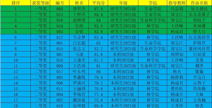 第二届东北林业大学标本制作大赛获奖名单
