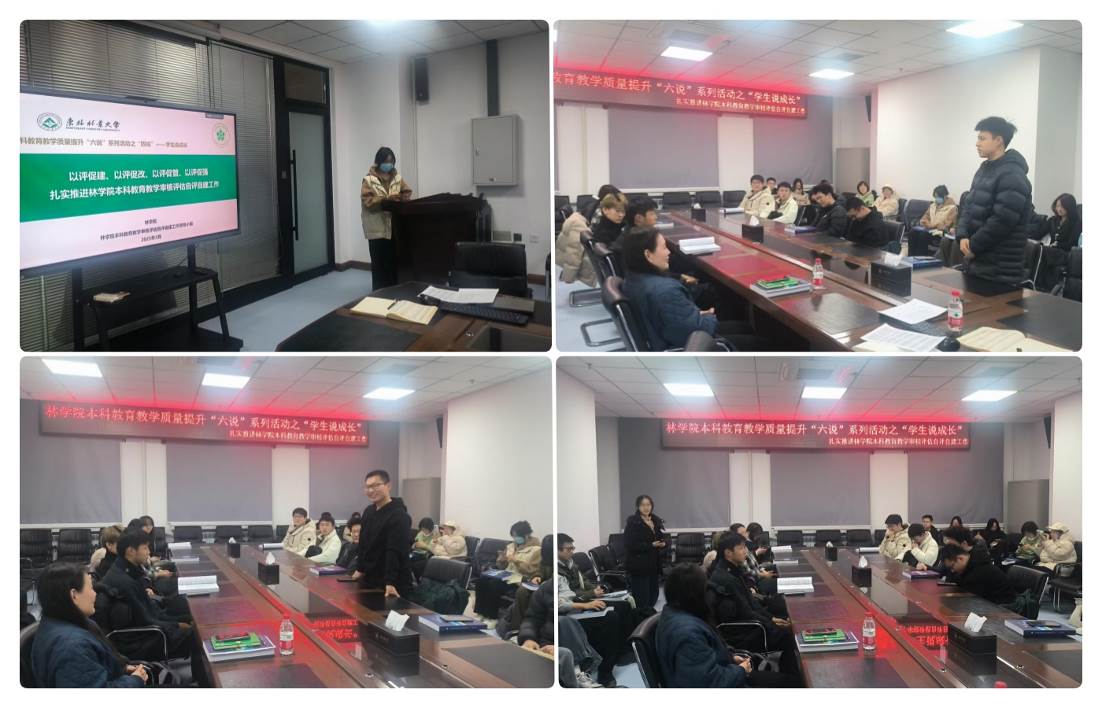 按照校评建办《关于开展本科教育教学质量提升“六说”系列活动的通知》要求,为全面落实以立德树人根本任务,扎实推进本科教育教学改革,梳理教育教学思路,凝练人才培养特色,营造良好的教育教学质量文化,促进学院本科教育教学审核评估自评自建,全面提高人才自主培养质量,林学院于2025年3月12日至3月28日在全院范围内开展了“学生说成长、教师说课程、主任说专业、院长说学院”等系列活动,并组织召开林学院本科教育教学审核评估工作推进会议。