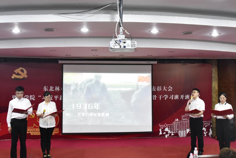致敬百年路,砥砺新征程。6月29日下午1点40分,为庆祝伟大的中国共产党建党100周年,表彰在学院建设过程中涌现出的先进集体和优秀个人代表,东北林业大学林学院庆祝建党100周年七一表彰大会暨第四期“习近平新时代中国特色社会主义思想”学生骨干学习班开班仪式在动保楼331隆重召开。对林学院302名百天党史学习打卡优秀个人、34名党史学习笔记优秀个人、37名优秀共产党员、7名优秀党务工作者、5个先进党支部予以表彰。