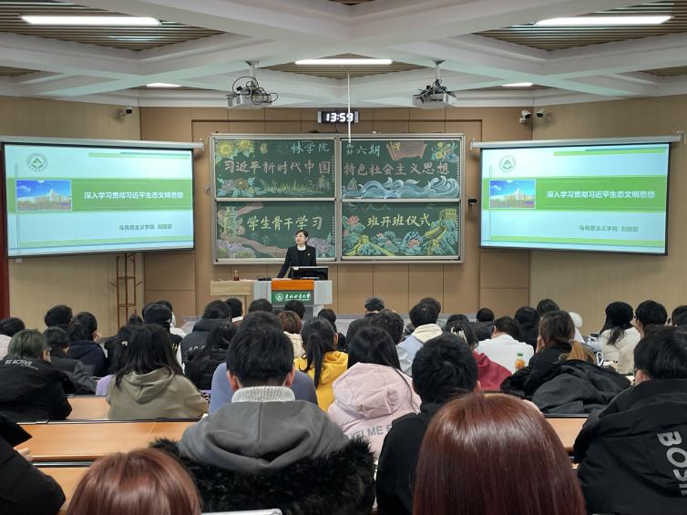 为积极响应党中央号召,践行党的二十大精神,引导学生学习习近平新时代中国特色社会主义思想,弘扬塞罕坝精神,林学院于2023年12月9日在锦绣楼T201教室举办林学院第六期“习近平新时代中国特色社会主义思想”学生骨干学习班开班仪式。林学院党委副书记、副院长杨冰雨出席本次活动,马克思主义学院教师刘甜甜作首场专题辅导报告,开班仪式由学习班班主任、团委书记王珏主持。