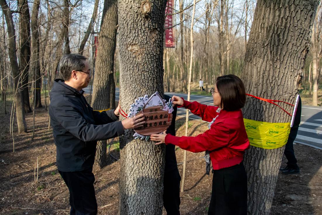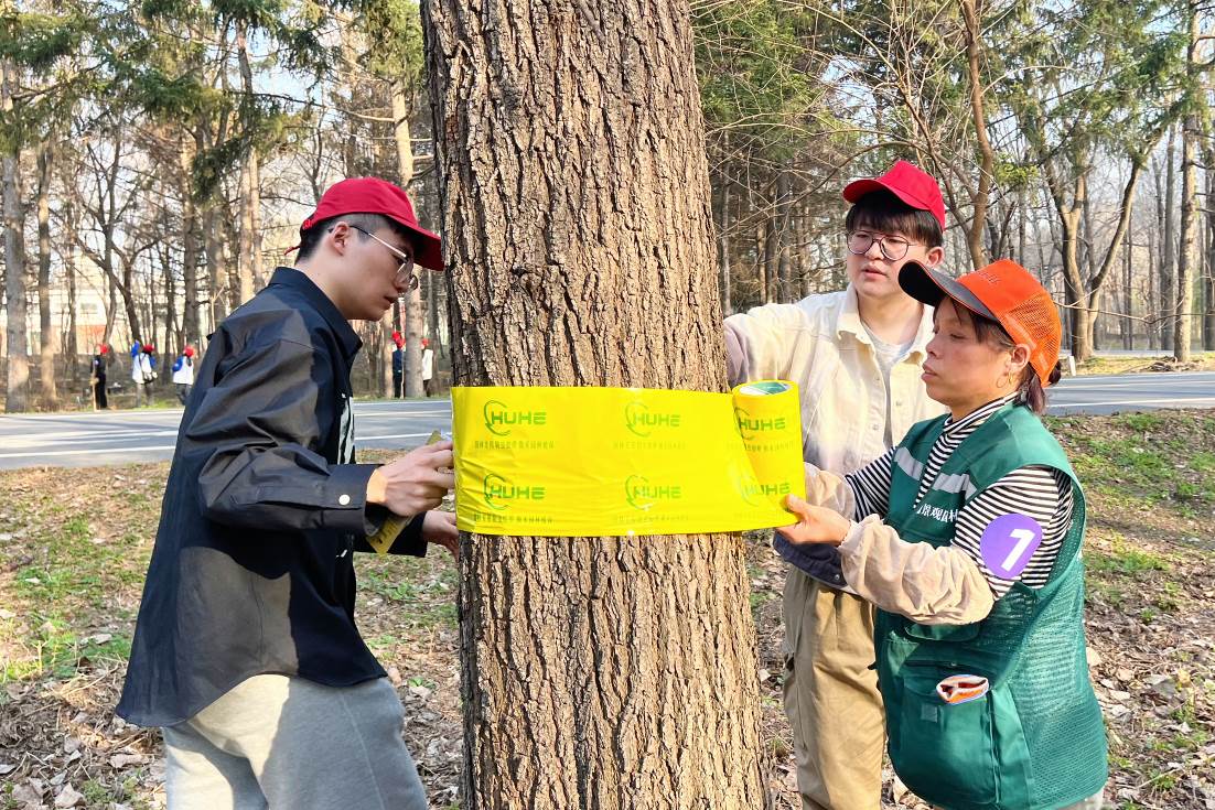 随后,在场师生共同进行文明标语挂牌活动。“守护绿水青山,厚植生态底色”、“赛罕悠悠载奉献,追青逐绿迎发展”等一条条文明标语彰显林学学子爱绿护绿的使命情怀。林学学子也必将像这些标语一样,用实际行动守护着祖国的绿水青山。