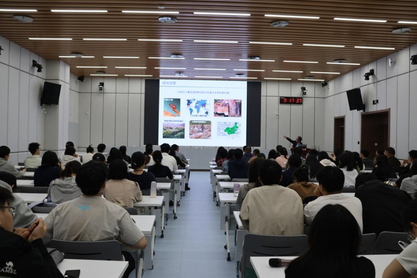 报告环节,孙教授深入浅出地阐述了红脂大小蠹及其虫菌共生入侵机制相关研究。从研究背景到前沿探索,从实验数据到理论模型,他凭借扎实的专业知识与丰富的一线科研经验,将复杂的学术内容生动呈现,在场的师生们认真聆听,,现场学术氛围浓厚。